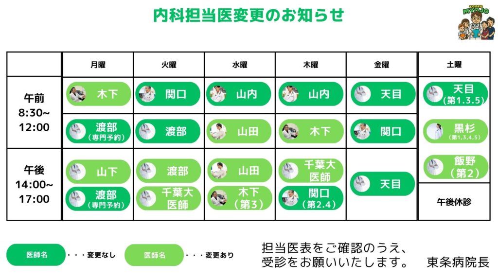 【4月1日より内科医外来担当医変更のお知らせ】